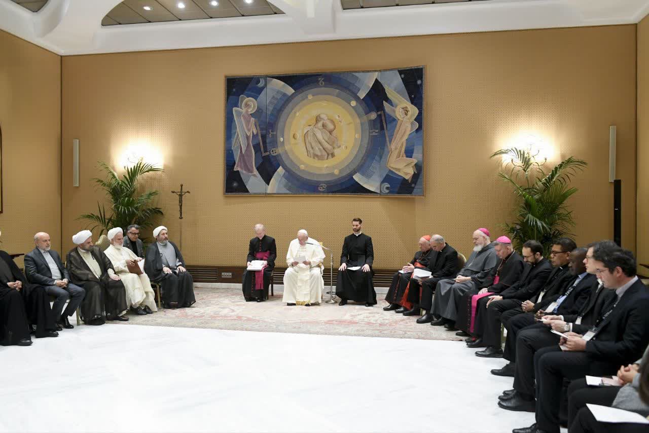 بنابر گزارش وب سایت واتیکان نیوز(رادیو واتیکان): صبح امروز چهارشنبه فرانسیس قبل از مراسم عبادی، با شرکت کنندگان در دوازدهمین دیدار نهاد گفتگوی بین ادیان با مرکز گفتگوی بین ادیان و فرهنگ و ارتباطات تهران دیدار کرد، موضوع این دیدار، “تربیت جوانان بخصوص در خانواده: چالشی برای مسیحیان و مسلمانان، بود.